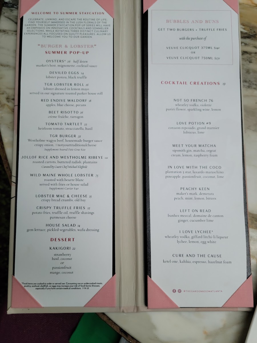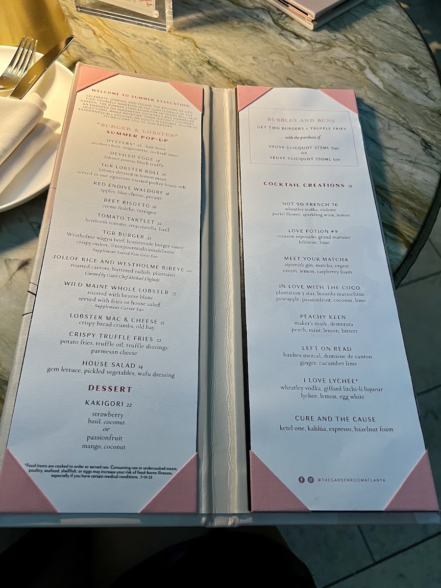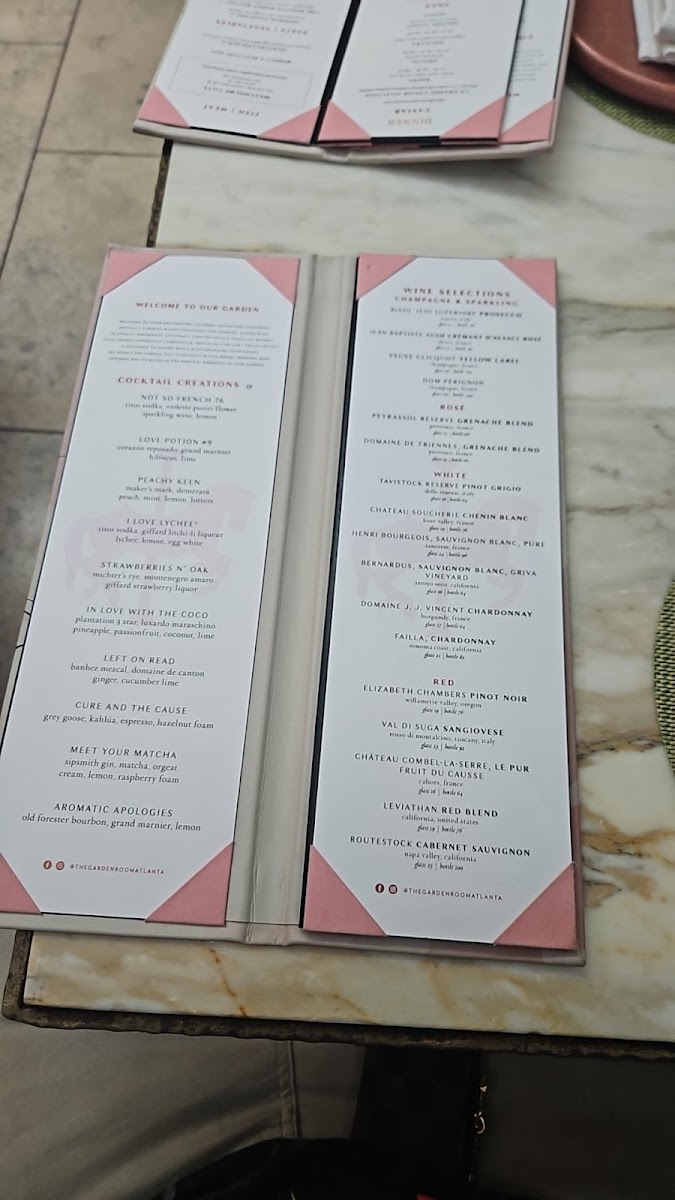 The cocktail menu is equally impressive, featuring inventive concoctions like Peachy Keen and In Love With The Coco. With attentive service and a captivating ambiance, The Garden Room invites you to indulge in an unforgettable dining experience.
